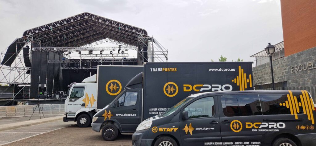 Tenemos nuestra propia flota de vehículos en alquiler con conductor, vehículos de 8 plazas para el transporte de personal, artistas, giras… Carga de material para giras, conciertos, backline… Alquiler de furgonetas y camiones para portes. Servicios auxiliares para eventos. Confía en los mejores, calidad, rapidez y profesionalidad. Empresa de alquiler de furgonetas con conductor. Nos comprometemos a cumplir con los plazos establecidos y a cuidar las mercancías en cada uno de las etapas hasta completar el envío.